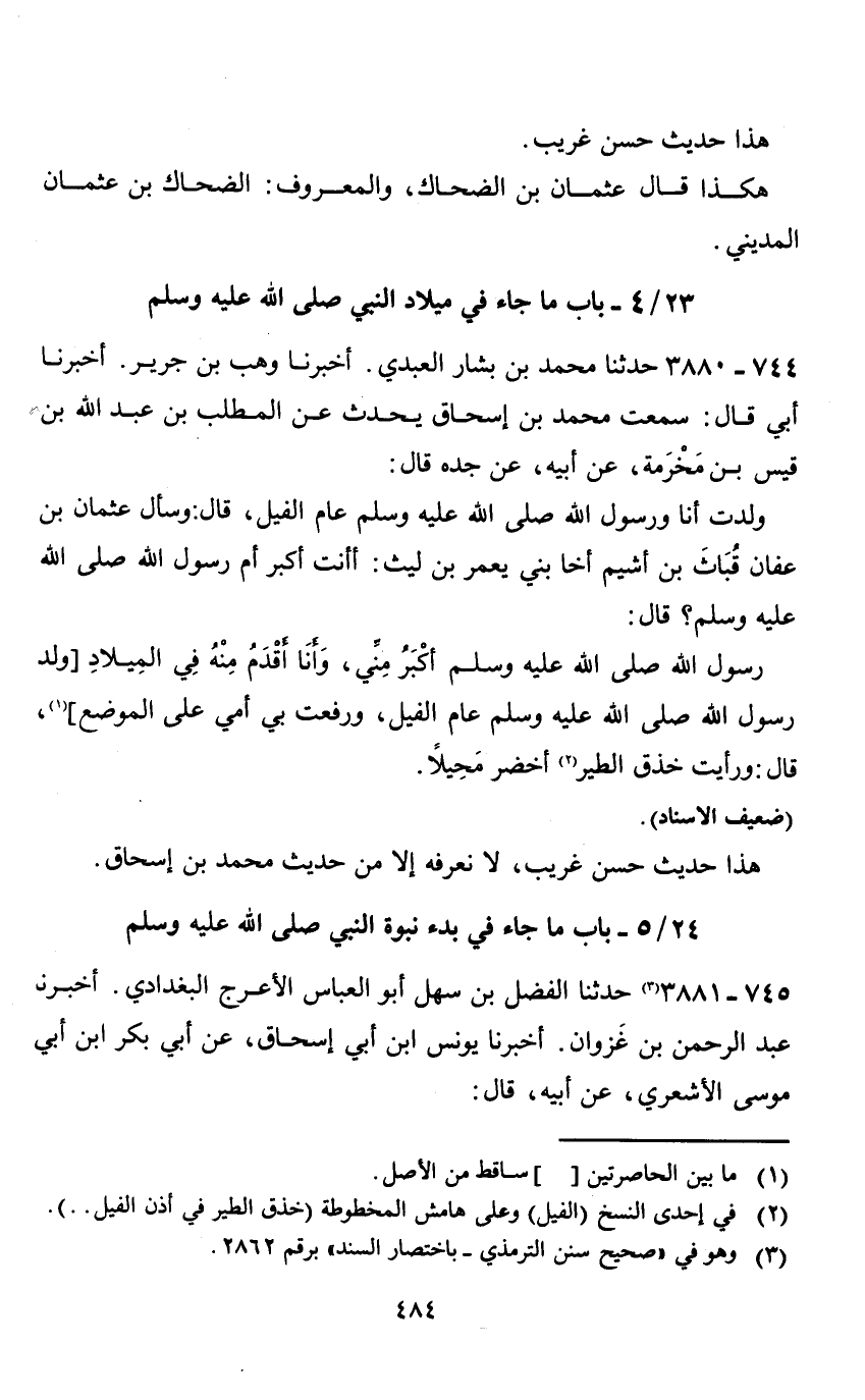 23 / 4 - باب ما جاء في ميلاد النبي صلى الله عليه وسلم 744 - 3880 حدثنا محمد بن بشار العبدي.