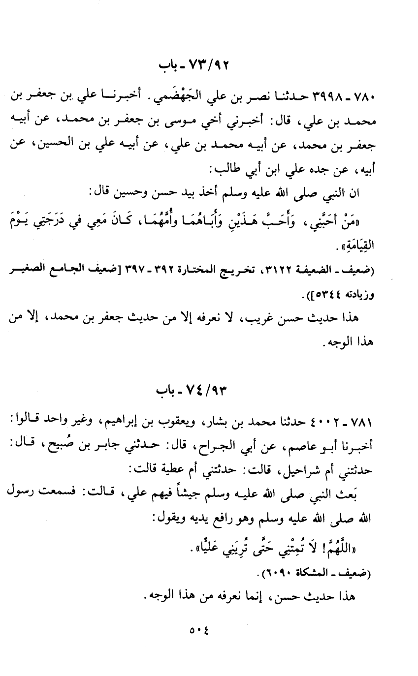 92 / 73 - باب 780 - 3998 حدثنا نصر بن علي الجهضمي.