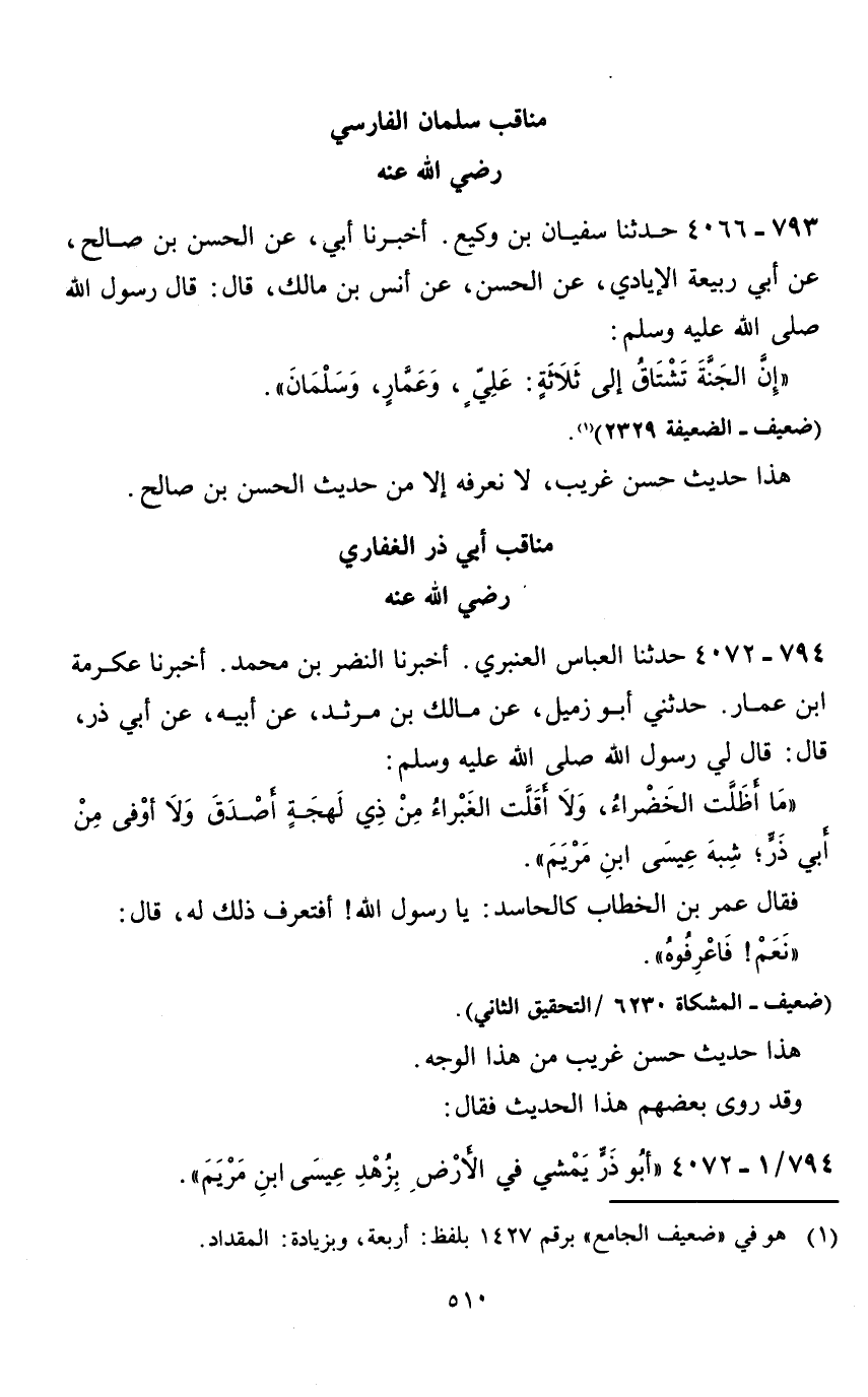 مناقب سلمان الفارسي رضي الله عنه 793 - 4066 حدثنا سفيان بن وكيع.