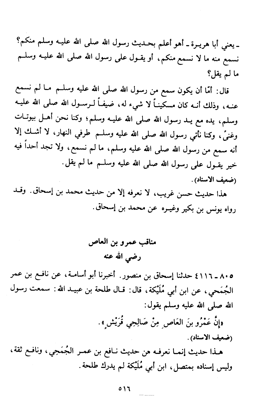 مناقب عمرو بن العاص رضي الله عنه 805 - 4116 حدثنا إسحاق بن منصور.