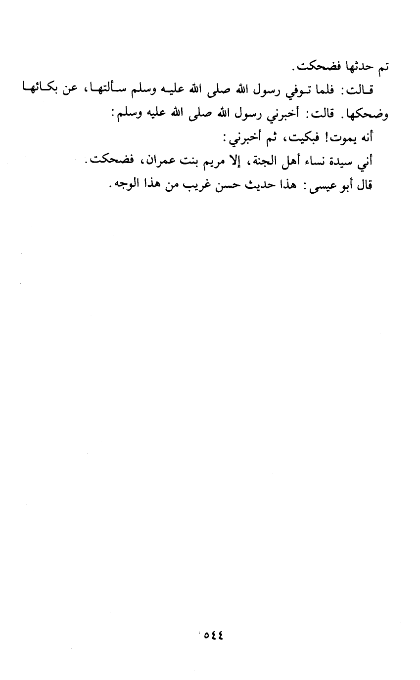 أني سيدة نساء أهل الجنة، إلا مريم بنت عمران، فضحكت.