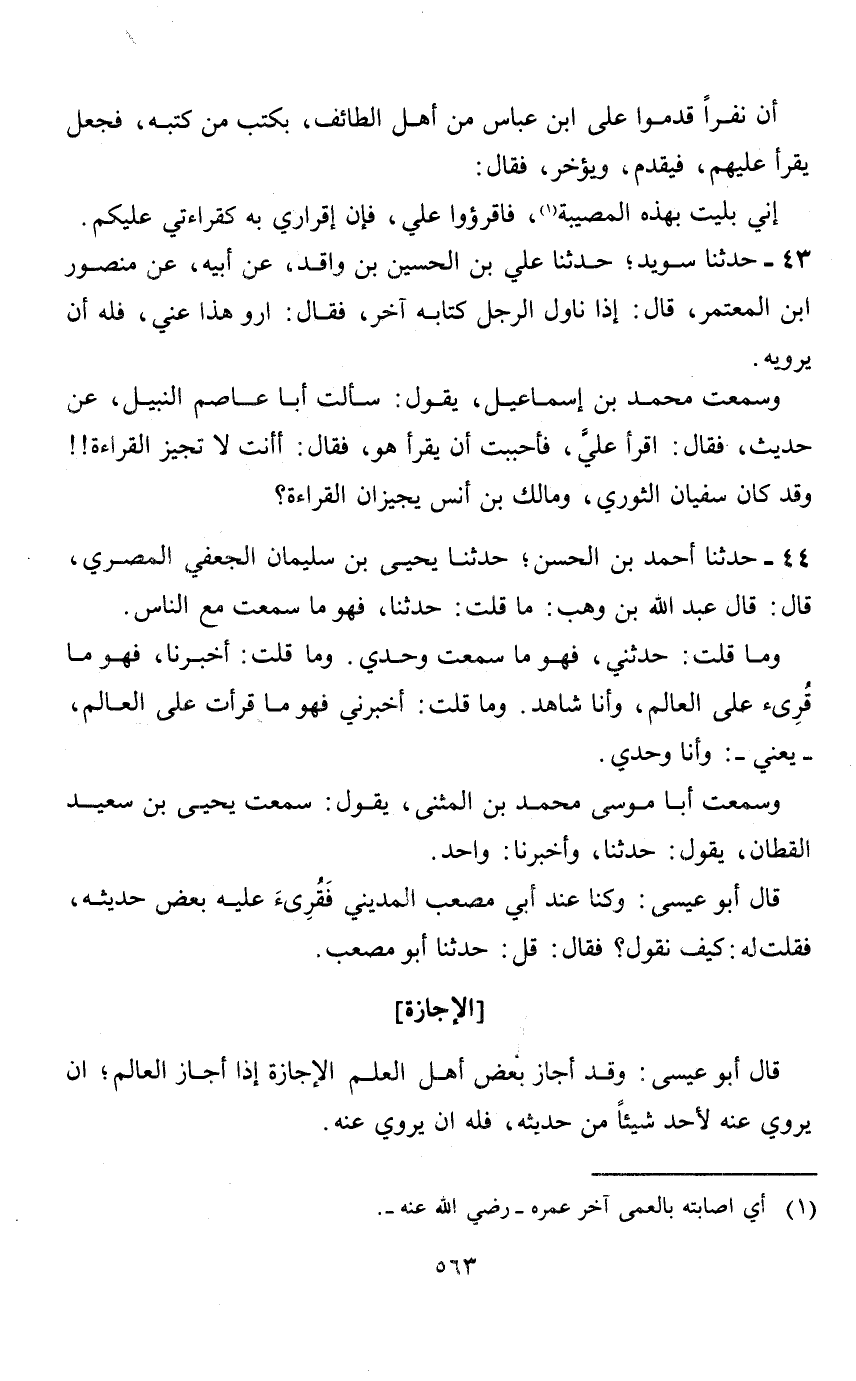 (الاجازة) قال أبو عيسى: وقد أجاز بعض أهل العلم الاجازة إذا أجاز العالم.