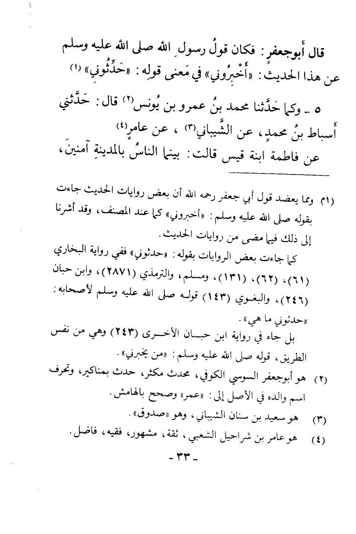 قَالَ أَبُو جَعْفَرٍ: فَكَانَ قَوْلُ رَسُولِ اللَّهِ صَلَّى اللَّهُ عَلَيْهِ وَسَلَّمَ عَنْ هَذَا الْحَدِيثِ: «أَخْبِرُونِي» فِي مَعْنَى قَوْلِهِ: حَدِّثُونِي.