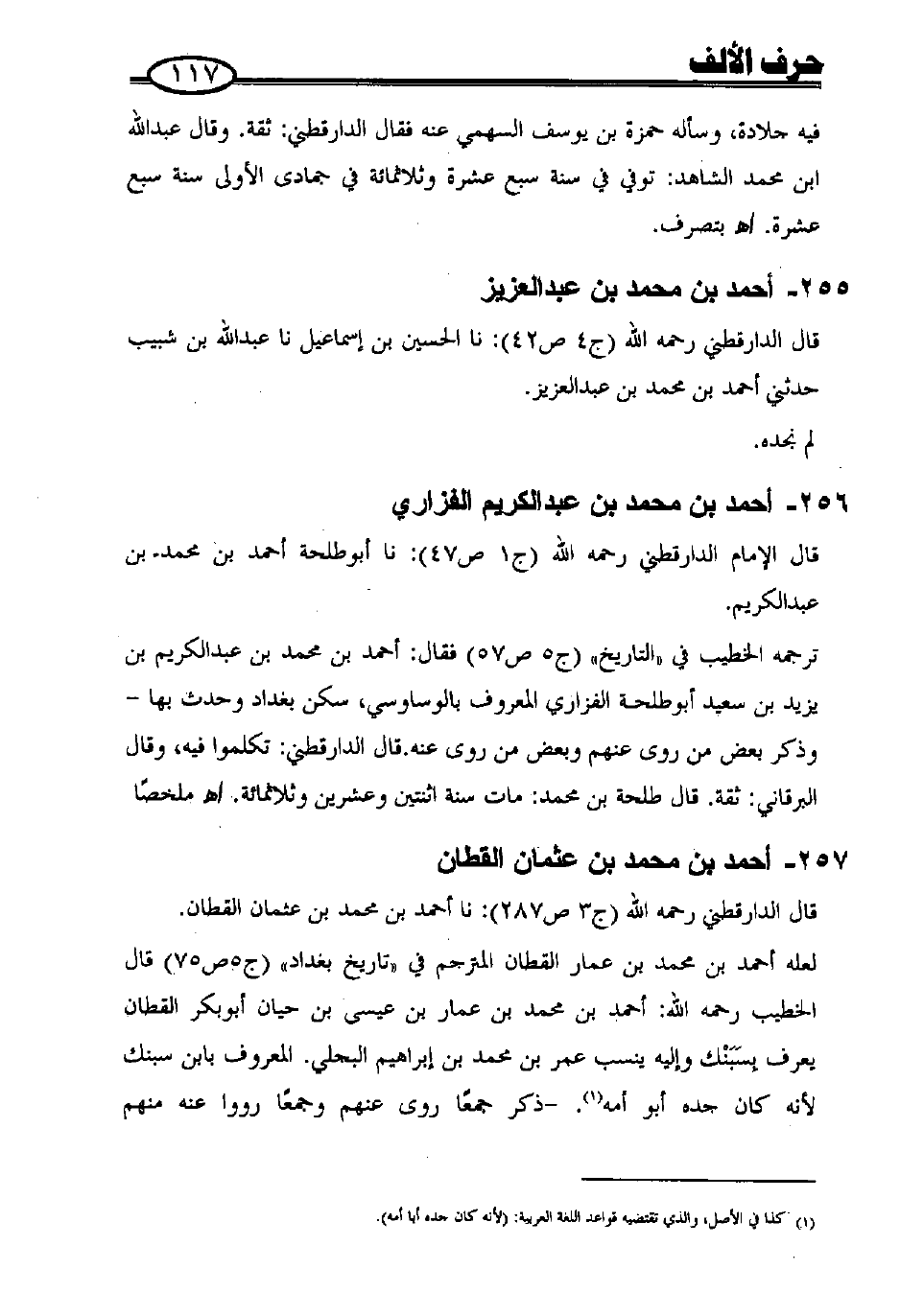قال الإمام الدارقطني - رحمه الله - (ج 1 ص 47): نا أبو طلحة أحمد بن محمد بن عبد الكريم.