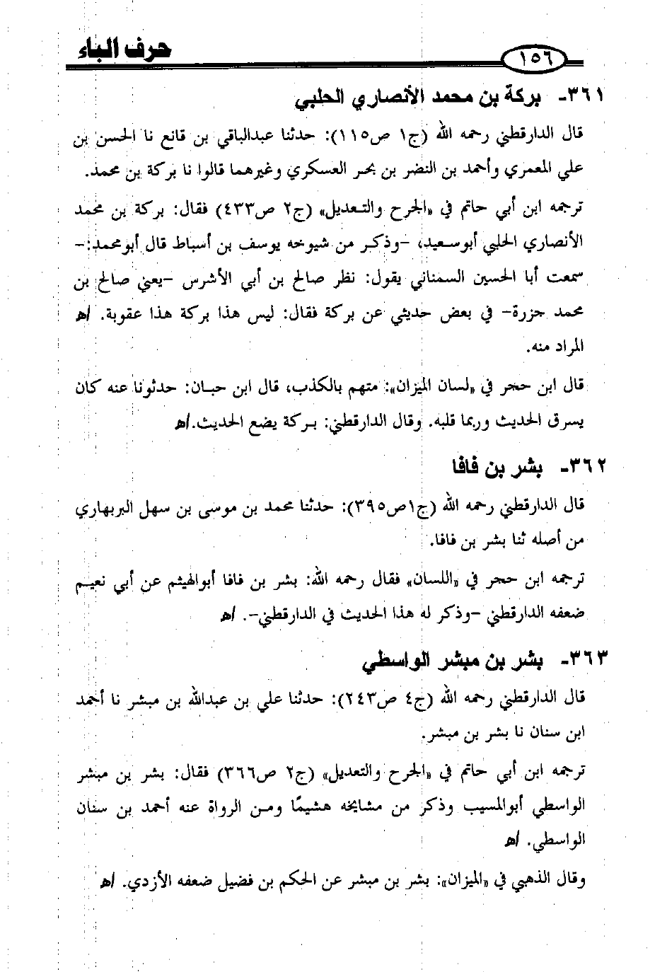 قال الدارقطني - رحمه الله - (ج 1 ص 115): حدثنا عبد الباقي بن قانع، نا الحسن بن علي المعمري، وأحمد بن النضر بن بحر العسكري وغيرهما، قالوا: نا بركة بن محمد.