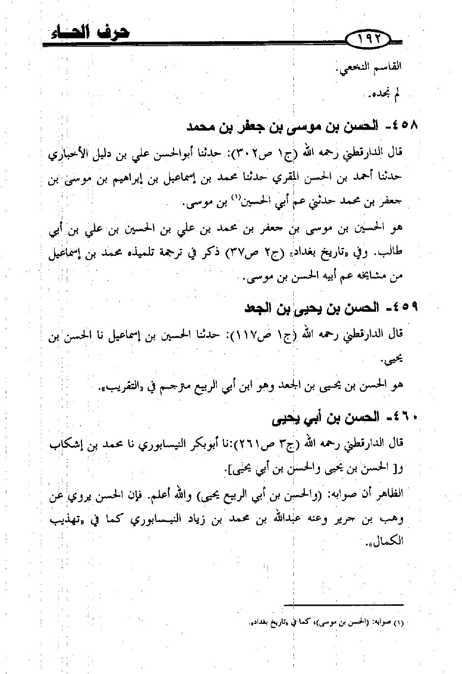 قال الدارقطني - رحمه الله - (ج 3 ص 261): نا أبو بكر النيسابوري، نا محمد بن أشكاب والحسن بن يحيى والحسن بن أبي يحيى.