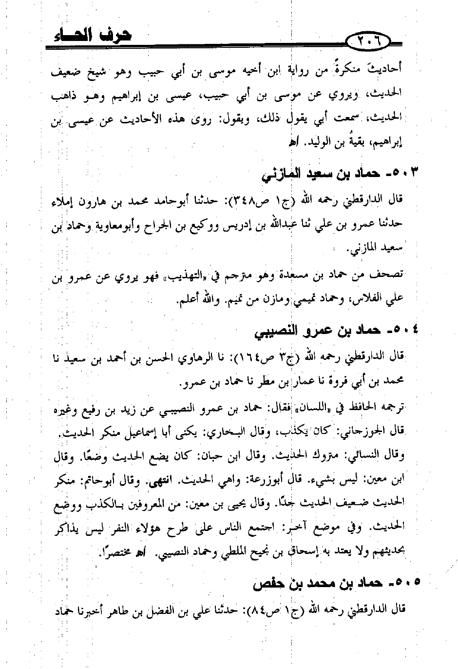 قال الدارقطني - رحمه الله - (ج 3 ص 164): نا الرهاوي الحسن بن أحمد بن سعيد، نا محمد بن أبي فروة، نا عمار بن مطر، نا حماد بن عمرو.