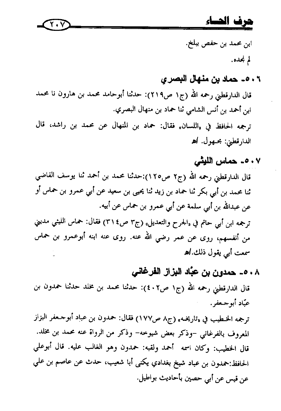 قال الدارقطني - رحمه الله - (ج 1 ص 219): حدثنا أبو حامد محمد بن هارون، نا محمد بن أحمد بن أنس الشامي، ثنا حماد بن منهال البصري.