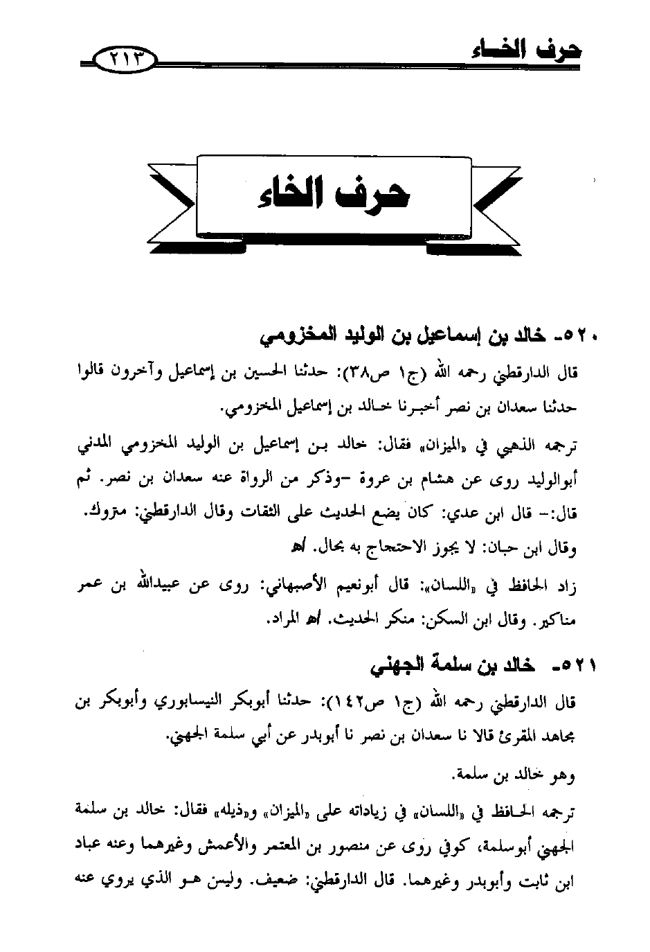 قال الدارقطني - رحمه الله - (ج 1 ص 38): حدثنا الحسين بن إسماعيل وآخرون، قالوا: حدثنا سعدان بن نصر، أخبرنا خالد بن إسماعيل المخزومي.