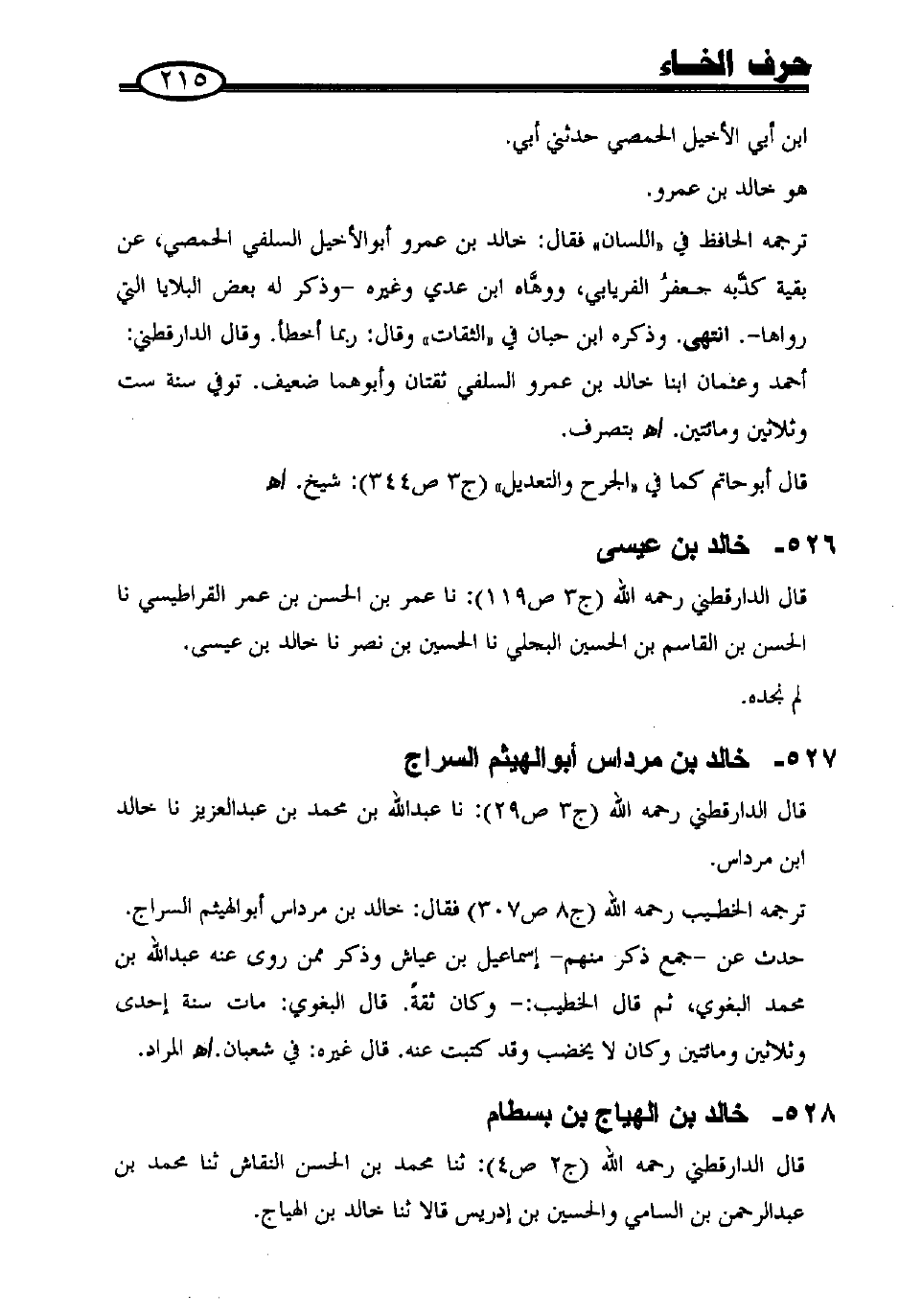 قال الدارقطني - رحمه الله - (ج 2 ص 4): ثنا محمد بن الحسن النقاش، ثنا محمد بن عبد الرحمن بن السامي، والحسين بن إدريس قالا: ثنا خالد بن الهياج.
