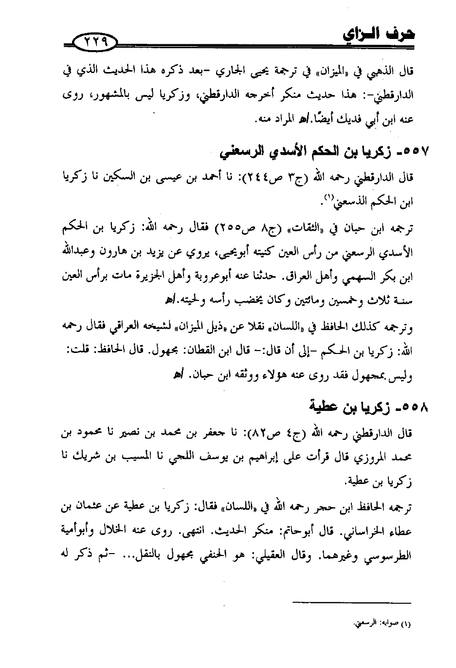 قال الدارقطني - رحمه الله - (ج 3 ص 244): نا أحمد بن عيسى بن السكين، نا زكريا بن الحكم الذسعني.