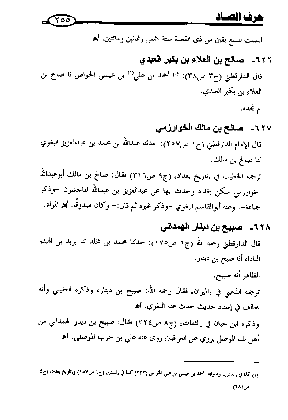 قال الدارقطني (ج 3 ص 38): ثنا أحمد بن علي بن عيسى الخواص، نا صالح بن العلاء بن بكير العبدي.