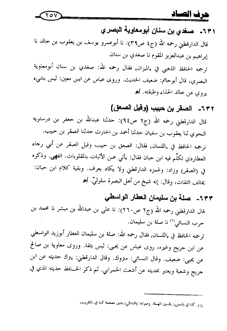 632 - الصقر بن حبيب (وقيل الصعق) قال الدارقطني - رحمه الله - (ج 2 ص 94): حدثنا عبد الله بن جعفر بن درستويه النحوي، ثنا يعقوب بن سفيان، حدثنا أحمد بن الحارث، حدثنا الصقر بن حبيب.