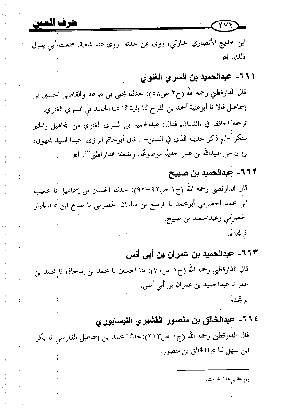 قال الدارقطني - رحمه الله - (ج 2 ص 58): حدثنا يحيى بن صاعد والقاضي الحسين بن إسماعيل قالا: نا أبو عتبة أحمد بن الفرج، ثنا بقية، ثنا عبد الحميد بن السري الغنوي.
