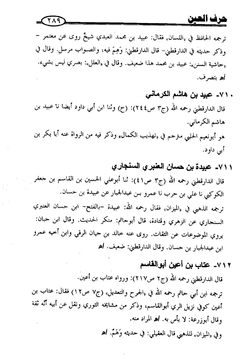 قال الدارقطني - رحمه الله - (ج 3 ص 41): ثنا أبو علي الحسين بن القاسم بن جعفر الكوكبي، نا علي بن حرب، نا عمرو بن عبد الجبار عن عبيدة بن حسان.