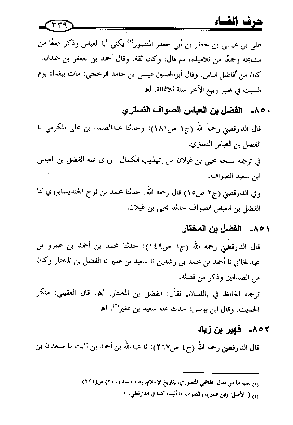 وفي الدارقطني (ج2 ص15) قال - رحمه الله -: حدثنا محمد بن نوح الجنديسابوري، ثنا الفضل بن العباس الصواف، حدثنا يحيى بن غيلان.