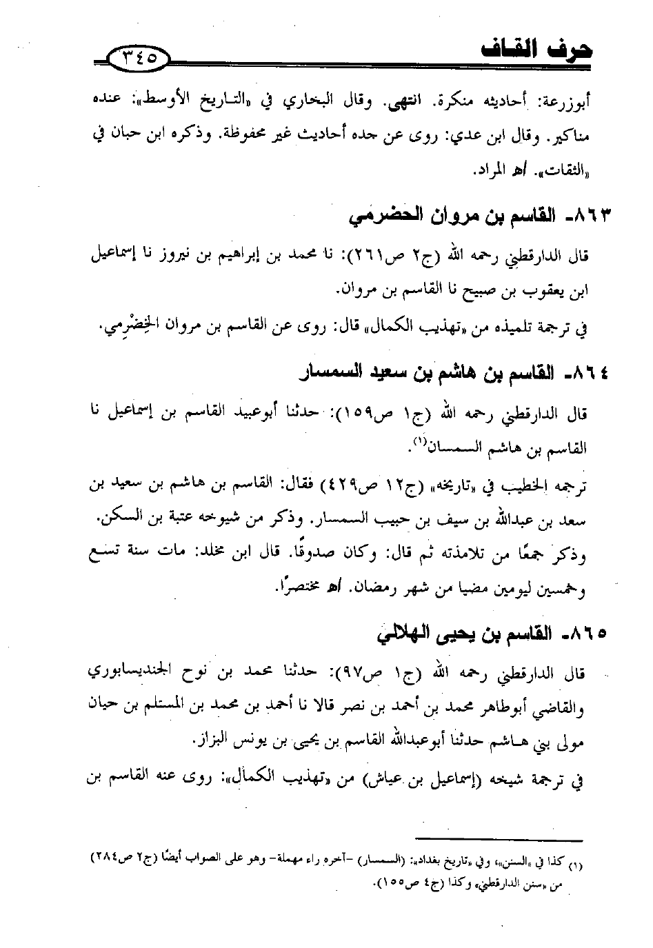 قال الدارقطني - رحمه الله - (ج 1 ص 159): حدثنا أبو عبيد القاسم بن إسماعيل، نا القاسم بن هاشم السمسان.