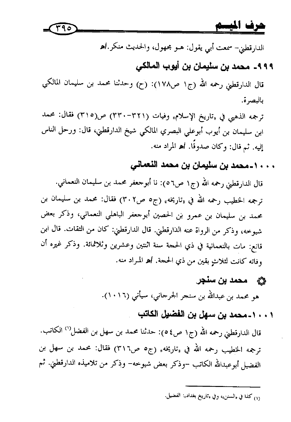 قال الدارقطني - رحمه الله - (ج 1 ص 178): (ح) وحدثنا محمد بن سليمان المالكي بالبصرة.
