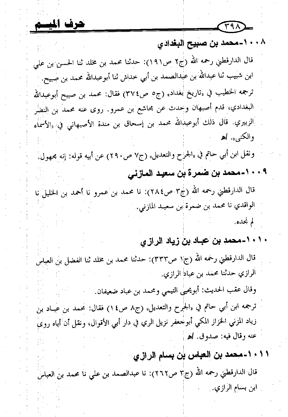 قال الدارقطني - رحمه الله - (ج 2 ص 191): حدثنا محمد بن مخلد، ثنا الحسن بن علي بن شبيب، ثنا عبد الله بن عبد الصمد بن أبي خداش، ثنا أبو عبد الله محمد بن صبيح.