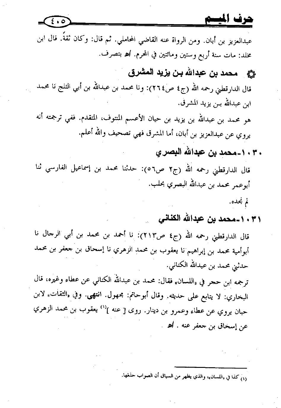 قال الدارقطني - رحمه الله - (ج 4 ص 264): ونا محمد بن عبد الله بن أبي الثلج، نا محمد بن عبد الله بن يزيد المشرق.