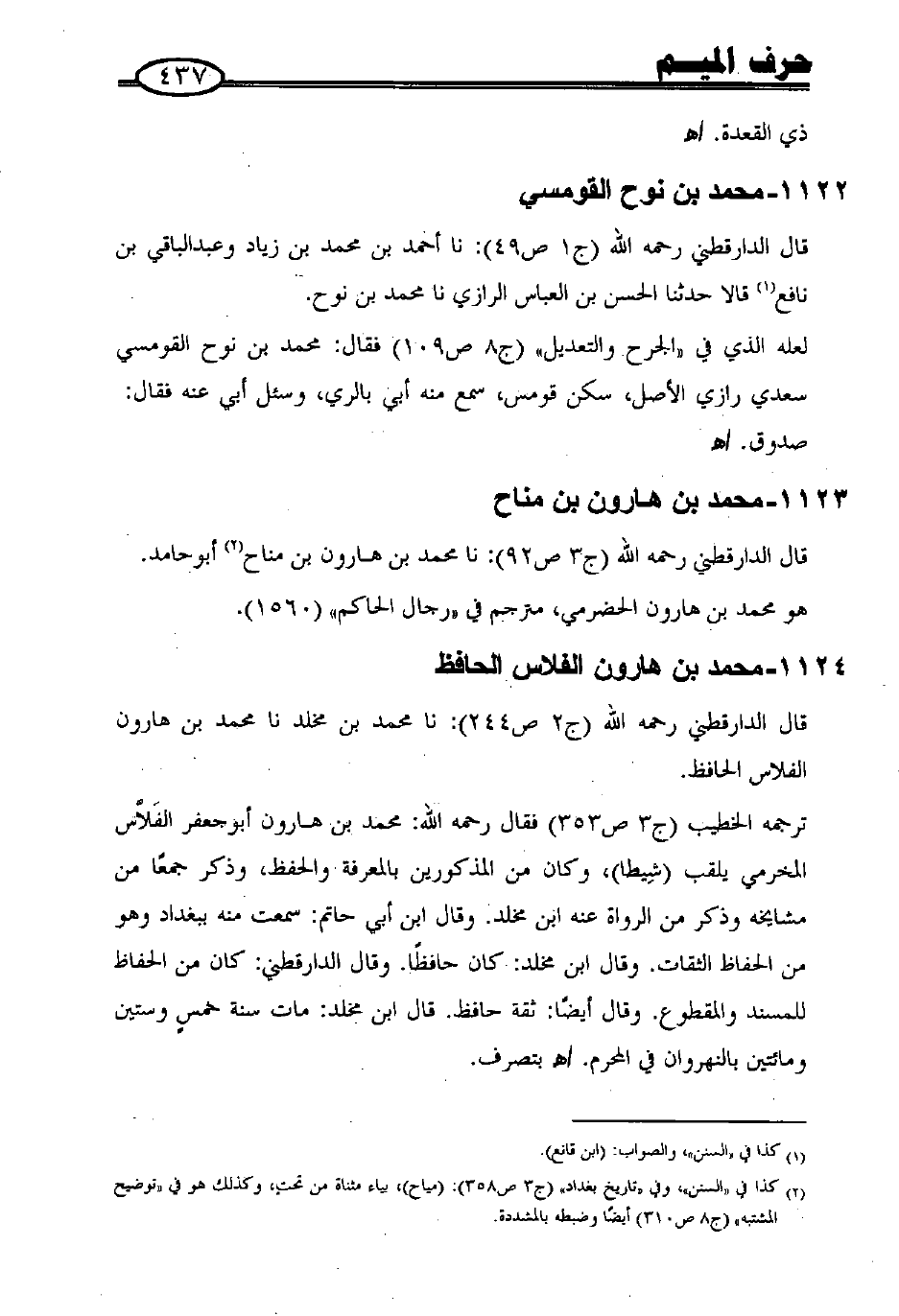 قال الدارقطني - رحمه الله - (ج 2 ص 244): نا محمد بن مخلد، نا محمد بن هارون الفلاس الحافظ.