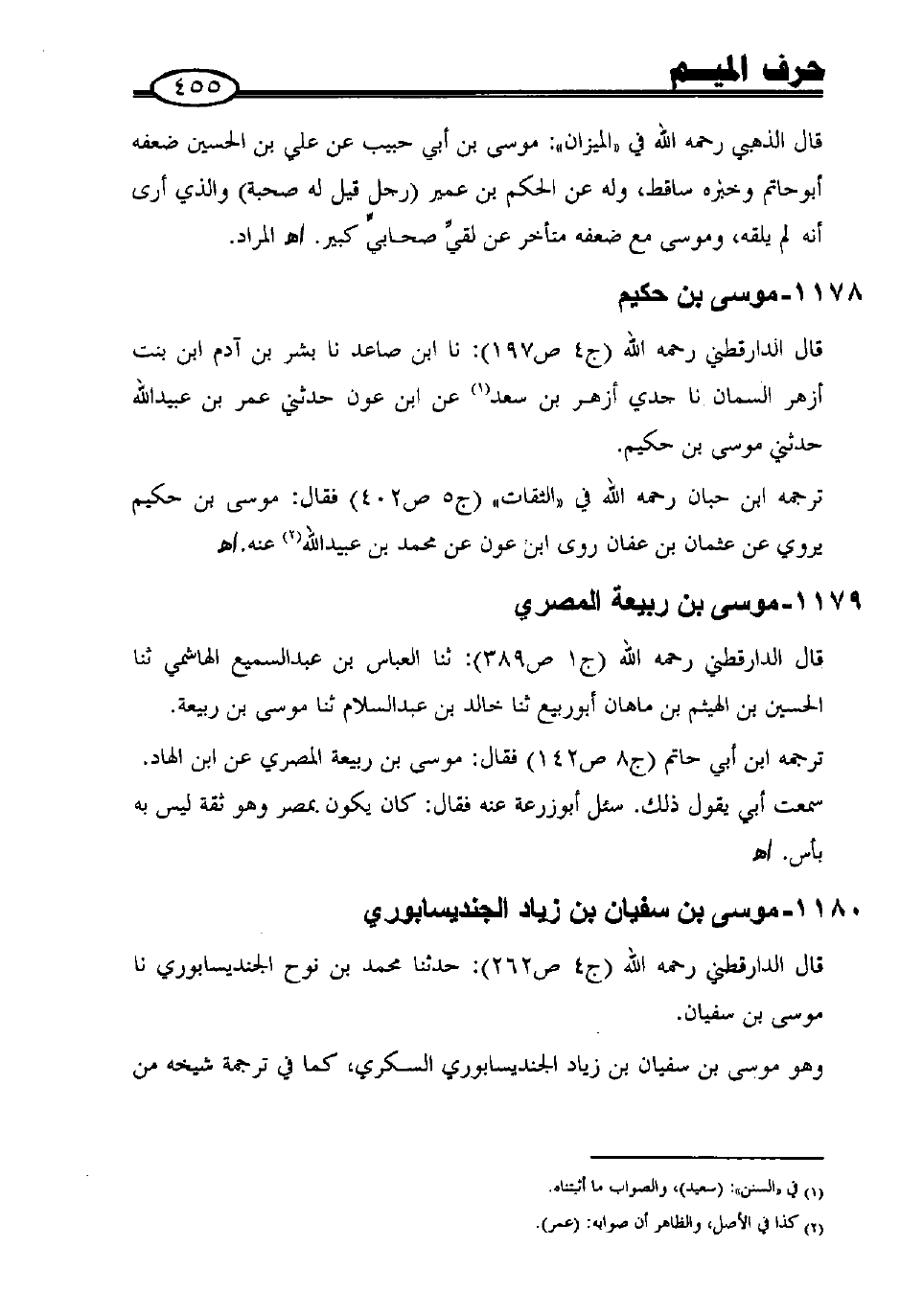 قال الدارقطني - رحمه الله - (ج 1 ص 389): ثنا العباس بن عبد السميع الهاشمي، ثنا الحسين بن الهيثم بن ماهان أبو ربيع، ثنا خالد بن عبد السلام، ثنا موسى بن ربيعة.