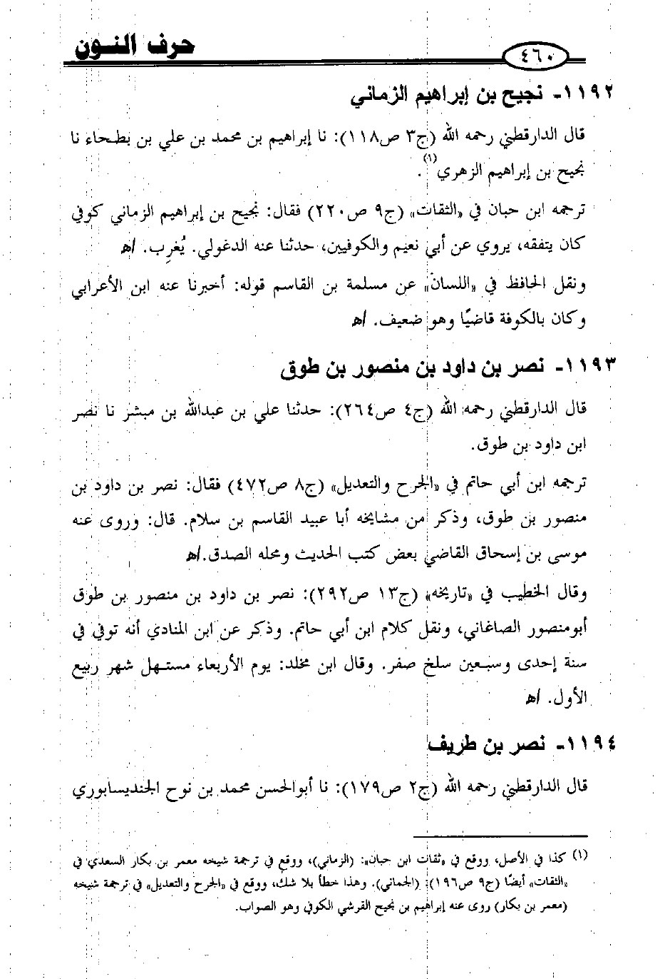 قال الدارقطني - رحمه الله - (ج 3 ص 118): نا إبراهيم بن محمد بن علي بن بطحاء، نا نجيح بن إبراهيم الزهري.