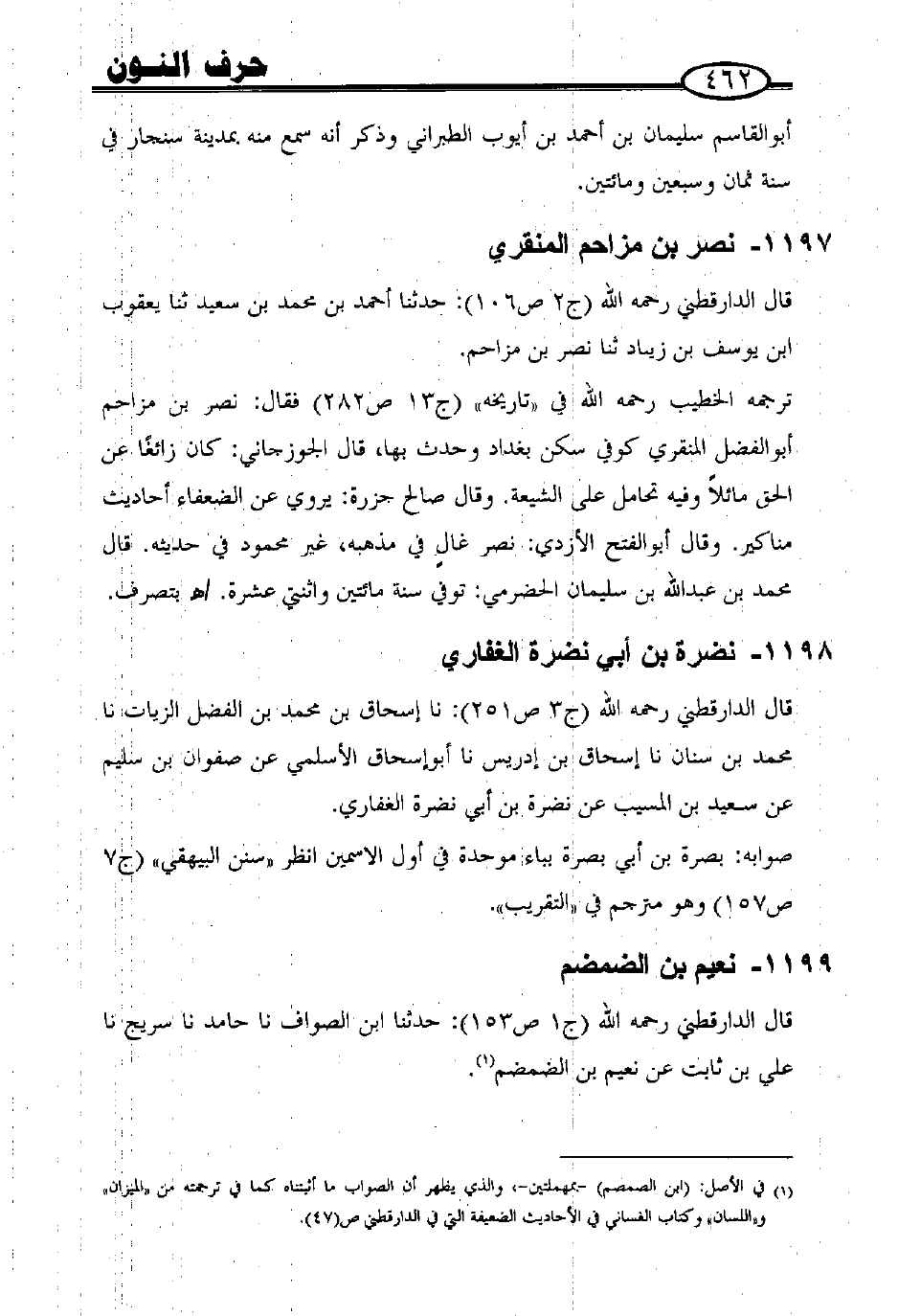 قال الدارقطني - رحمه الله - (ج 1 ص 153): حدثنا ابن الصواف، نا حامد، نا سريج، نا علي بن ثابت، عن نعيم بن الضمضم.