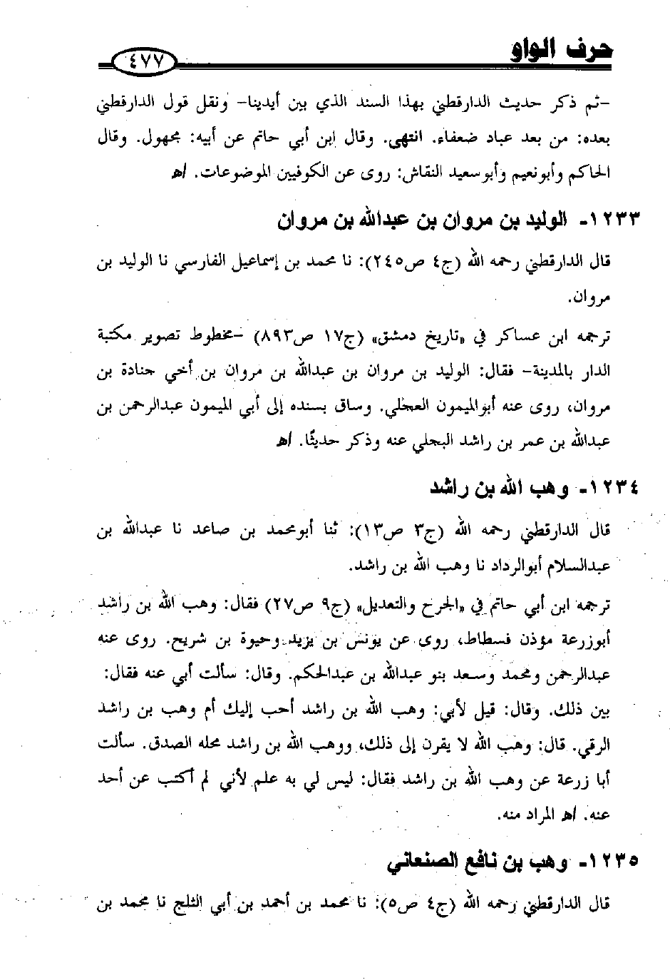 قال الدارقطني - رحمه الله - (ج 3 ص 13): ثنا أبو محمد بن صاعد، نا عبد الله بن عبد السلام أبو الرداد، نا وهب الله بن راشد.
