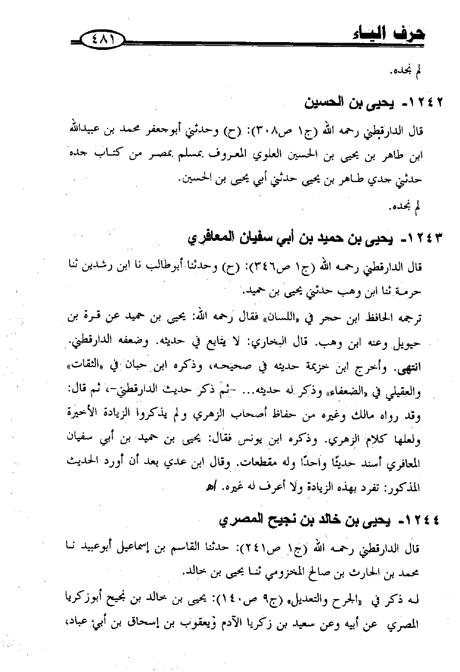 قال الدارقطني - رحمه الله - (ج 1 ص 346): (ح) وحدثنا أبو طالب، نا ابن رشدين، ثنا حرمة، ثنا ابن وهب، حدثني يحيى بن حميد.