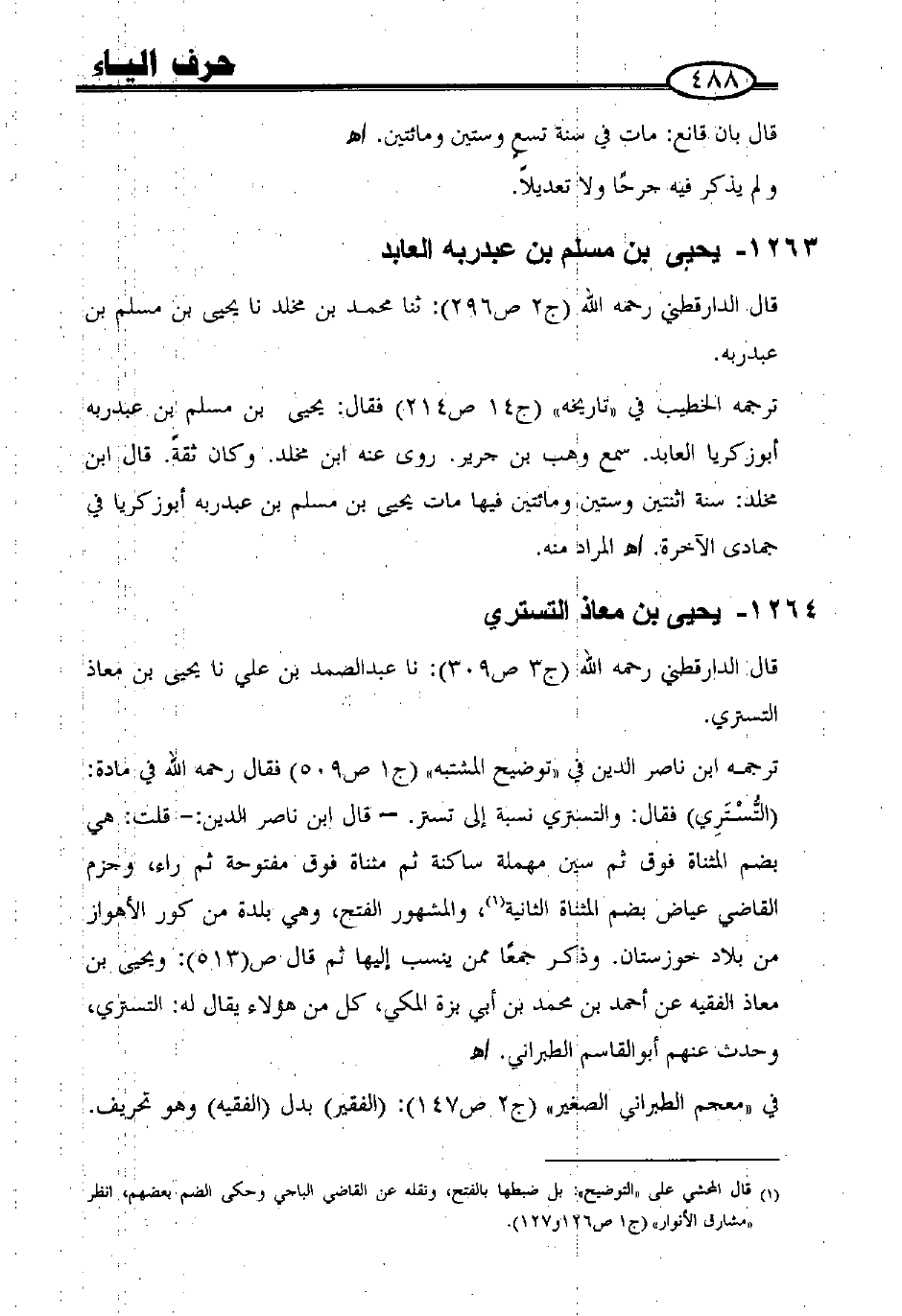 قال الدارقطني - رحمه الله - (ج 3 ص 309): نا عبد الصمد بن علي، نا يحيى بن معاذ التستري.