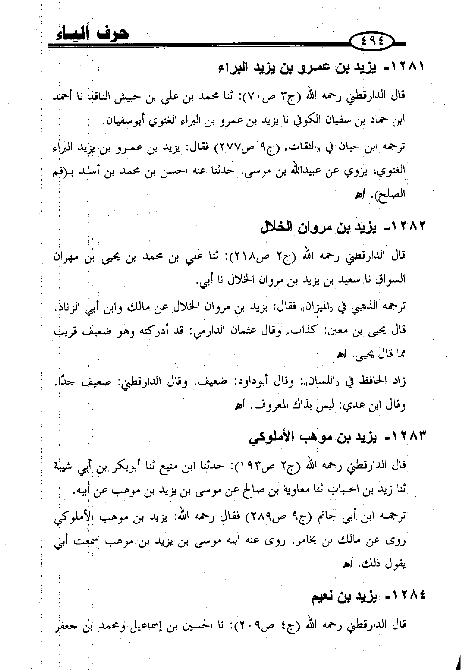 قال الدارقطني - رحمه الله - (ج 3 ص 70): ثنا محمد بن علي بن حبيش الناقد، نا أحمد بن حماد بن سفيان الكوفي، نا يزيد بن عمرو بن البراء الغنوي أبو سفيان.
