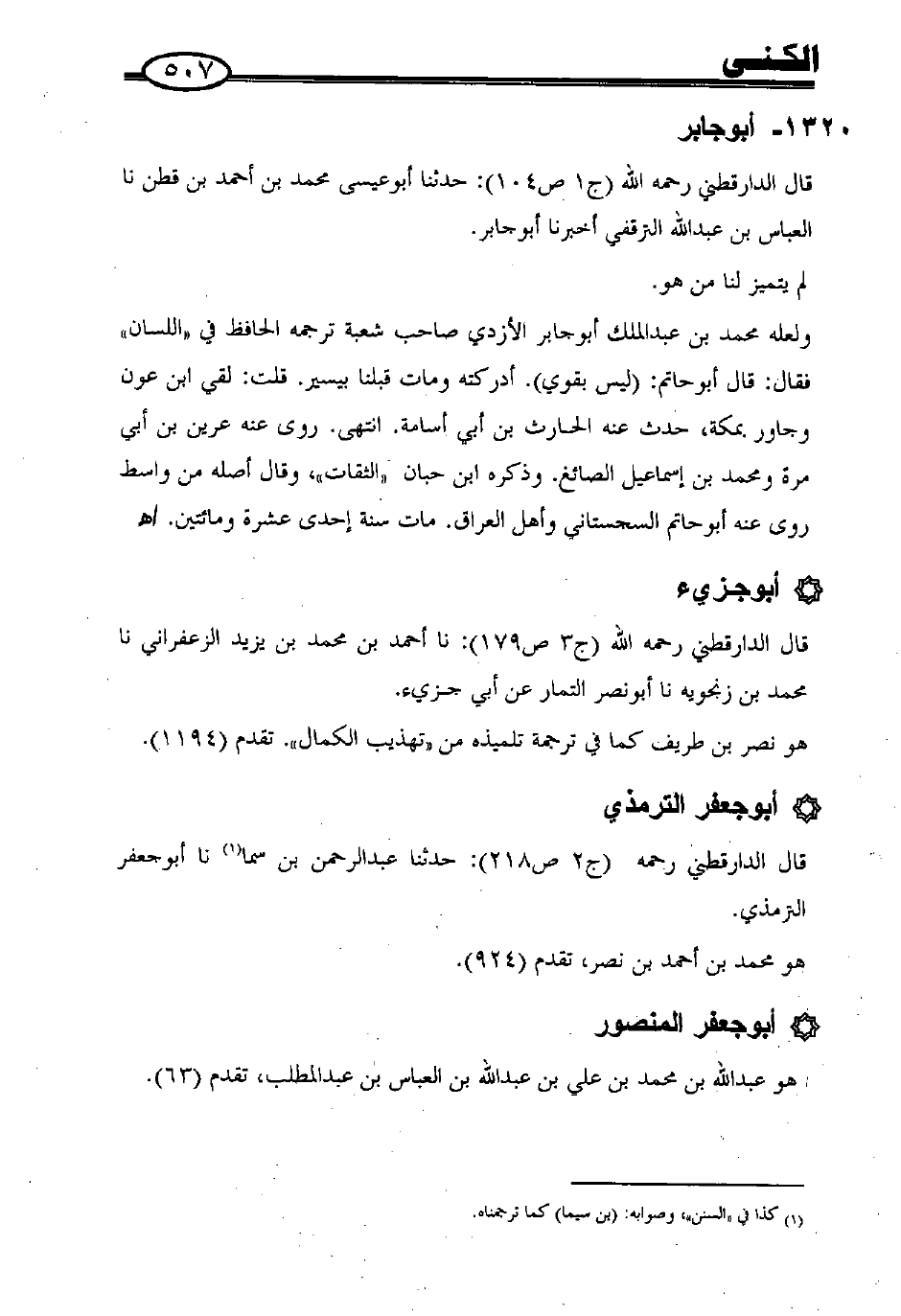 قال الدارقطني - رحمه الله - (ج 3 ص 179): نا أحمد بن محمد بن يزيد الزعفراني، نا محمد بن زنجويه، نا أبو النصر التمار، عن أبي جزيء.