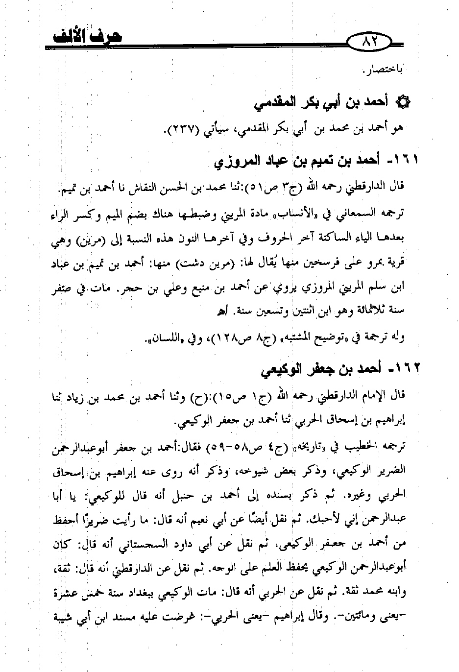 قال الإمام الدارقطني - رحمه الله - (ج 1 ص 15): (ح) وثنا أحمد بن محمد بن زياد، ثنا إبراهيم بن إسحاق الحربي، ثنا أحمد بن جعفر الوكيعي.