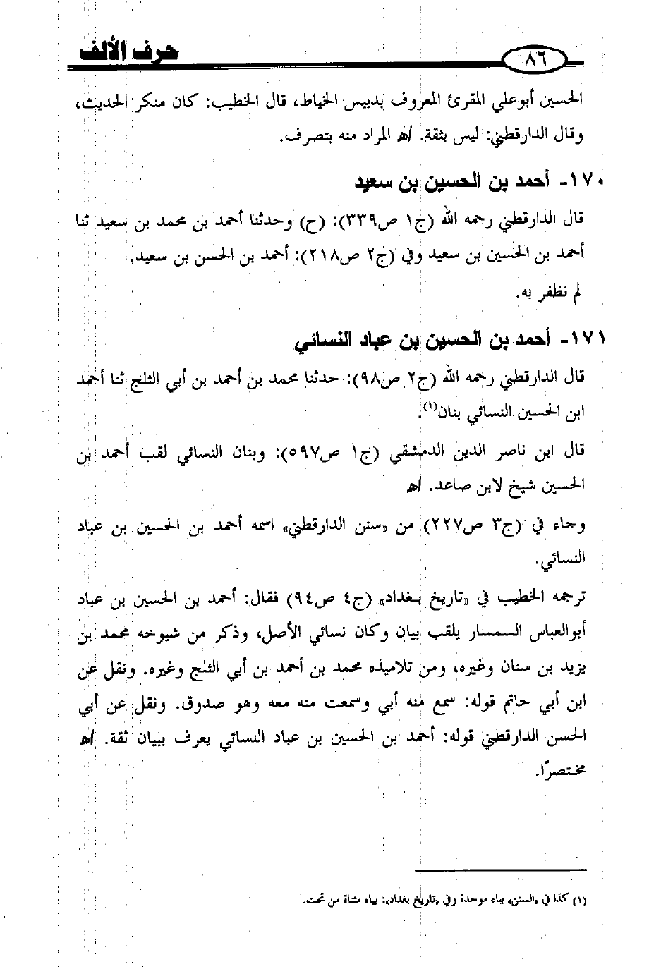 قال الدارقطني - رحمه الله - (ج 2 ص 98): حدثنا محمد بن أحمد بن أبي الثلج، ثنا أحمد بن الحسين النسائي بنان.