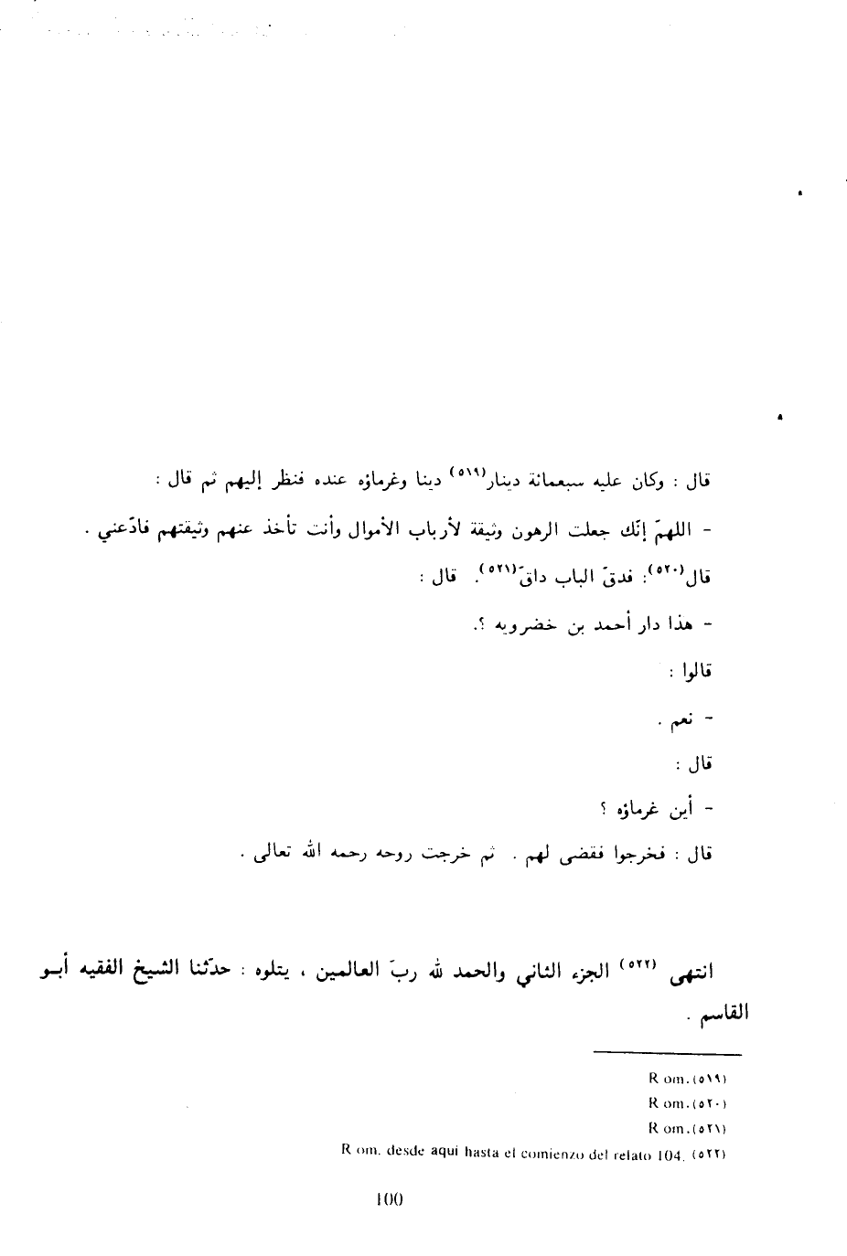 103 - قرأت بخط أبي بكر بن مجاهد رحمه الله: قرأت على أبي محمد الحسين بن أحمد الواعظ بمصر، قال: أنا أبو عبد الرحمن السلمي، قال: سمعت منصور بن عبد الله يقول: سمعت محمد بن حامد يقول: كنت جالسا عند أحمد بن خضرويه، وهو في النزع، وقد أتى عليه خمس وسبعون سنة، فسأله بعض أصحابنا عن مسألة فدمعت عيناه وقال: يا بني، باب كنت أدقه منذ خمس وسعين سنة، هو ذا يفتح لي الساعة، لا أدري أيفتح بالسعادة أم بالشقاوة.
