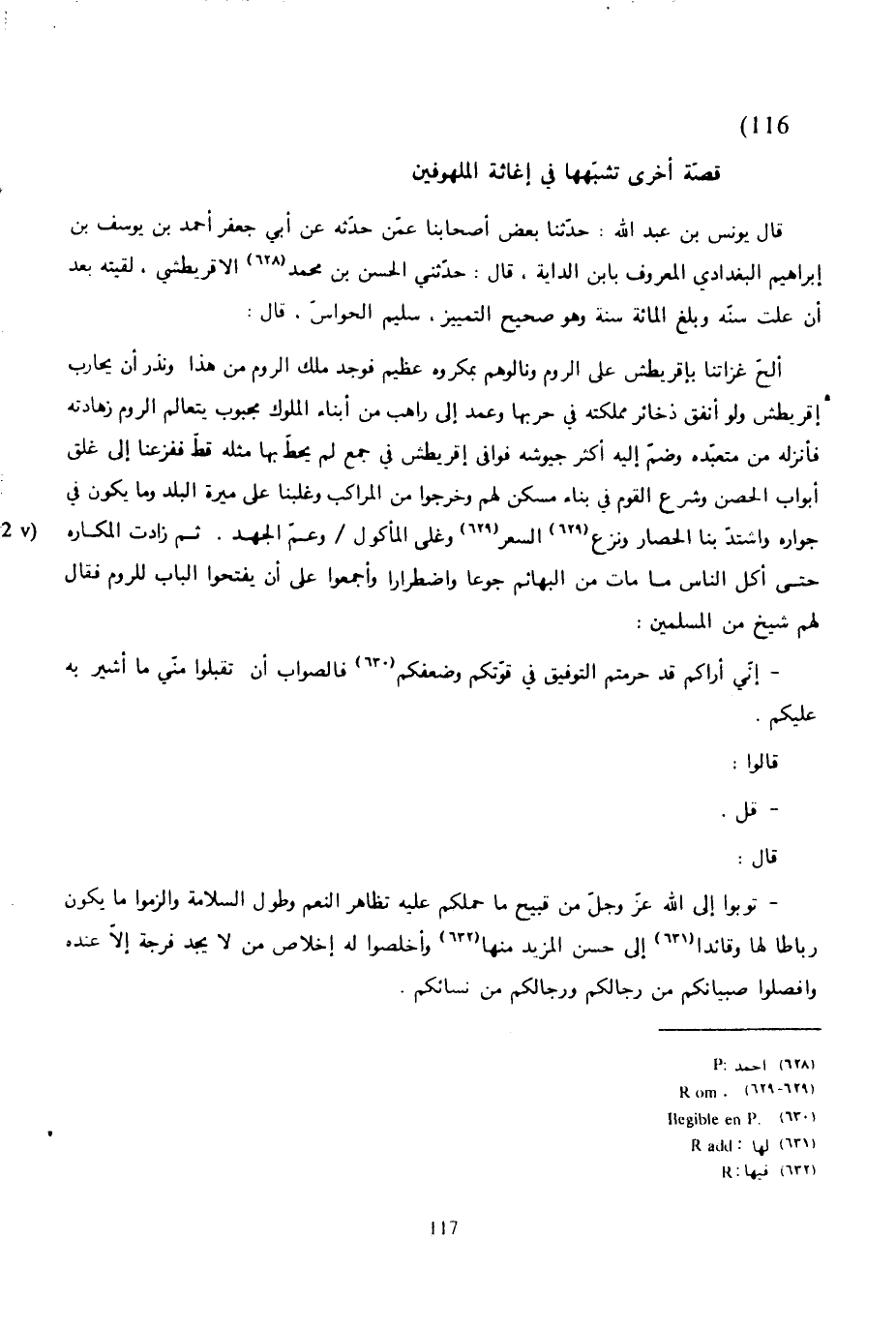 فقالت لها: يا أختي، فأين الله؟ قال الرجل: فوالله لقد سري عني ما كنت فيه من المخافة والجزع لما سمعت قولها: «فأين الله؟» ورجوت النصر، فلما أصبحنا من الغد، وأشرفنا على سور المدينة على محلة الروم، رأيناها خالية وإذا الأرض منهم بلاقع، وإذا هم قد رفعوا محلتهم في تلك الليلة، ودخلوا مراكبهم وولوا في البحر، كأنهم قد هزموا، والحمد لله رب العالمين.