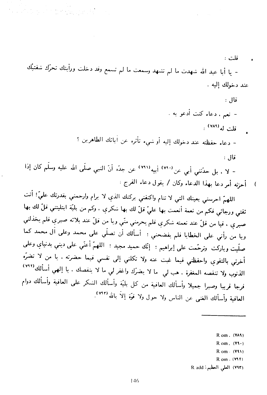 فما زال يقول حتى سكن ما به ولان له فقال: اجلس أبا عبد الله؛ ارتفع أبا عبد الله.