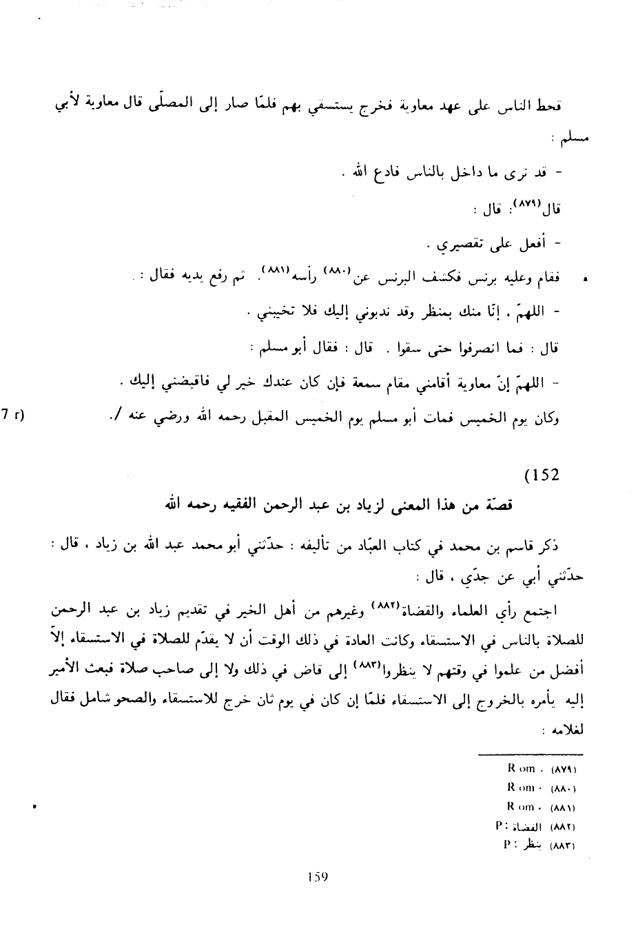 150 - قال يونس: وحدثني أبو بكر إسماعيل بن بدر، قال: ثنا ابن وضاح، قال: كان بقرطبة من ناحية صدفورة رجل فاضل، يكنى: أبا نصر، فاستسقى ابن بشير القاضي بالناس بقرطبة فنادى: يا أبا نصر ناشدتك الله إن كنت حاضرا إلا قم ادع الله لنا.