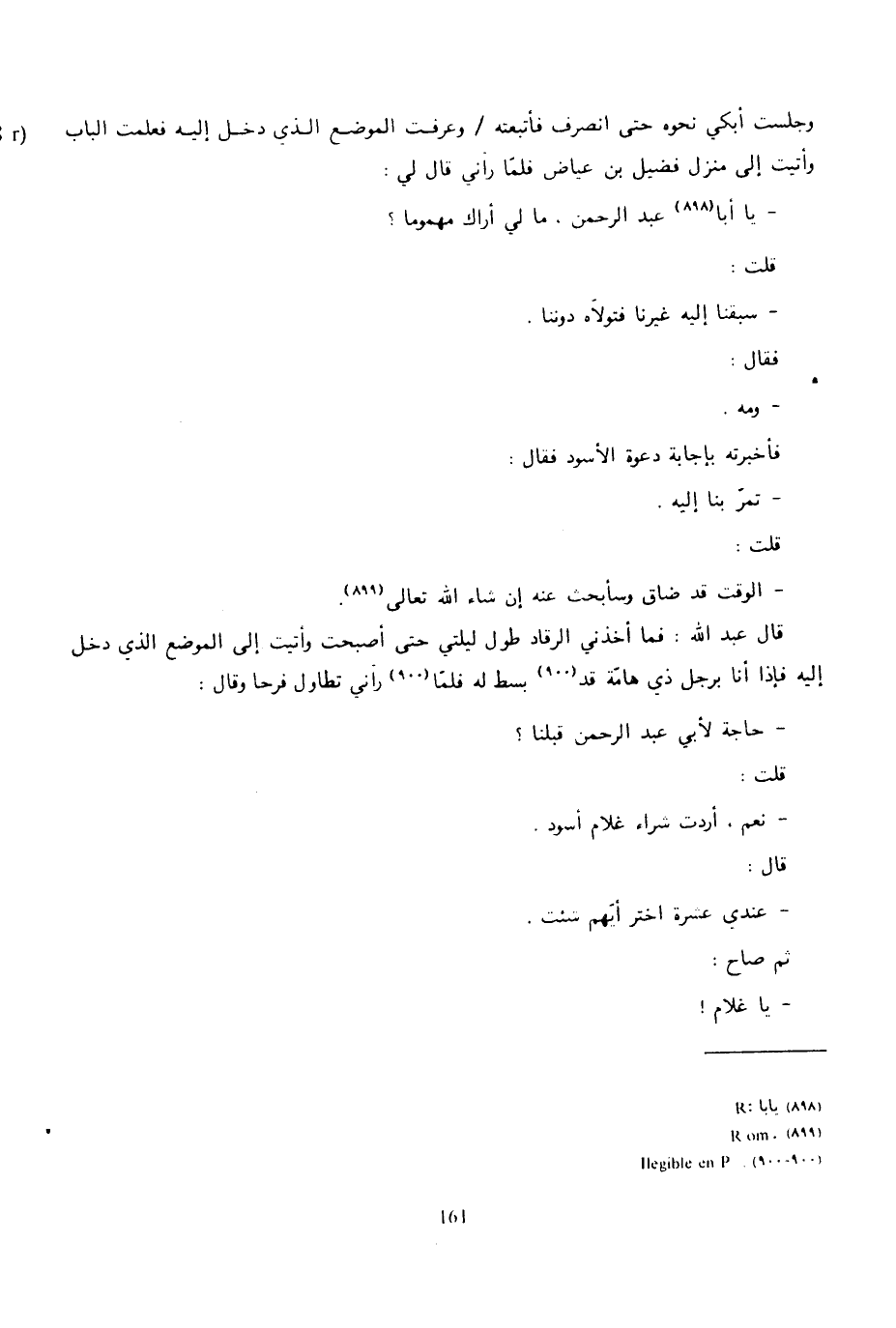 ذكر مؤلف كتاب العروس، قال: حدثنا محمد بن الفرج مولى بني هاشم، قال: ثنا صالح بن عبد الله البصري، عن عبد الله بن المبارك، قال: خرجت في بعض السنين إلى بيت الله الحرام، فأتيت مكة وقد قحط الناس قحطا شديدا وقد خرجوا يستسقون، وخرجت معهم، وكنا مما يلي بني شيبة، فتضرع الناس بالدعاء، إذ حانت مني التفاتة، فإذا أنا بأسود عليه خلقان، مؤتزر بأحدهما، مرتد بالأخرى، وهو يقول: «إلهي وسيدي أخلقت الوجوه عندك، كثرت الذنوب ومساوي الأعمال، فمنعتنا قطر السماء تؤدب الخليقة بذلك، فأقسمت عليك بحقي، إلا أسقينا الغيث الساعة الساعة» .