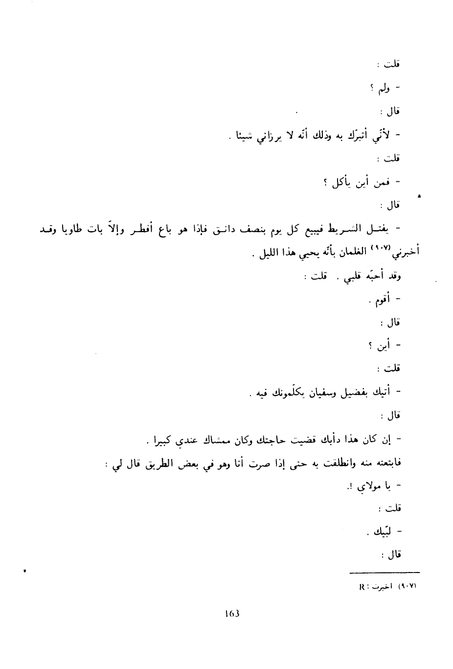 فصاح به، فإذا أنا بصاحبي قد أقبل، فلما أن بصرت به، بدرتني عيناي بالدموع، فحبست دمعي فقال لي: هذا أردت؟ قلت: نعم.