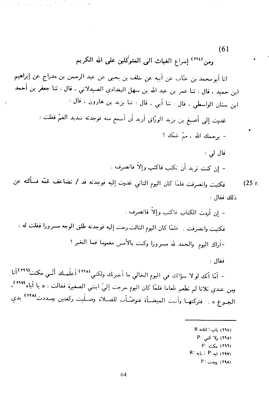 60 - ومن رواية أبي القاسم الربعي، قال: ثنا أحمد بن سعيد المؤدب، عن محمد بن أبي عبيدة الناجي، عن أبيه، عن الحسن، قال: لما نزلت هذه الآية {وَفِي السَّمَاءِ رِزْقُكُمْ وَمَا تُوعَدُونَ} [الذاريات: 22] ، قال رجل من الأنصار: لأصدقن ربي، ولأجلسن في بيتي.