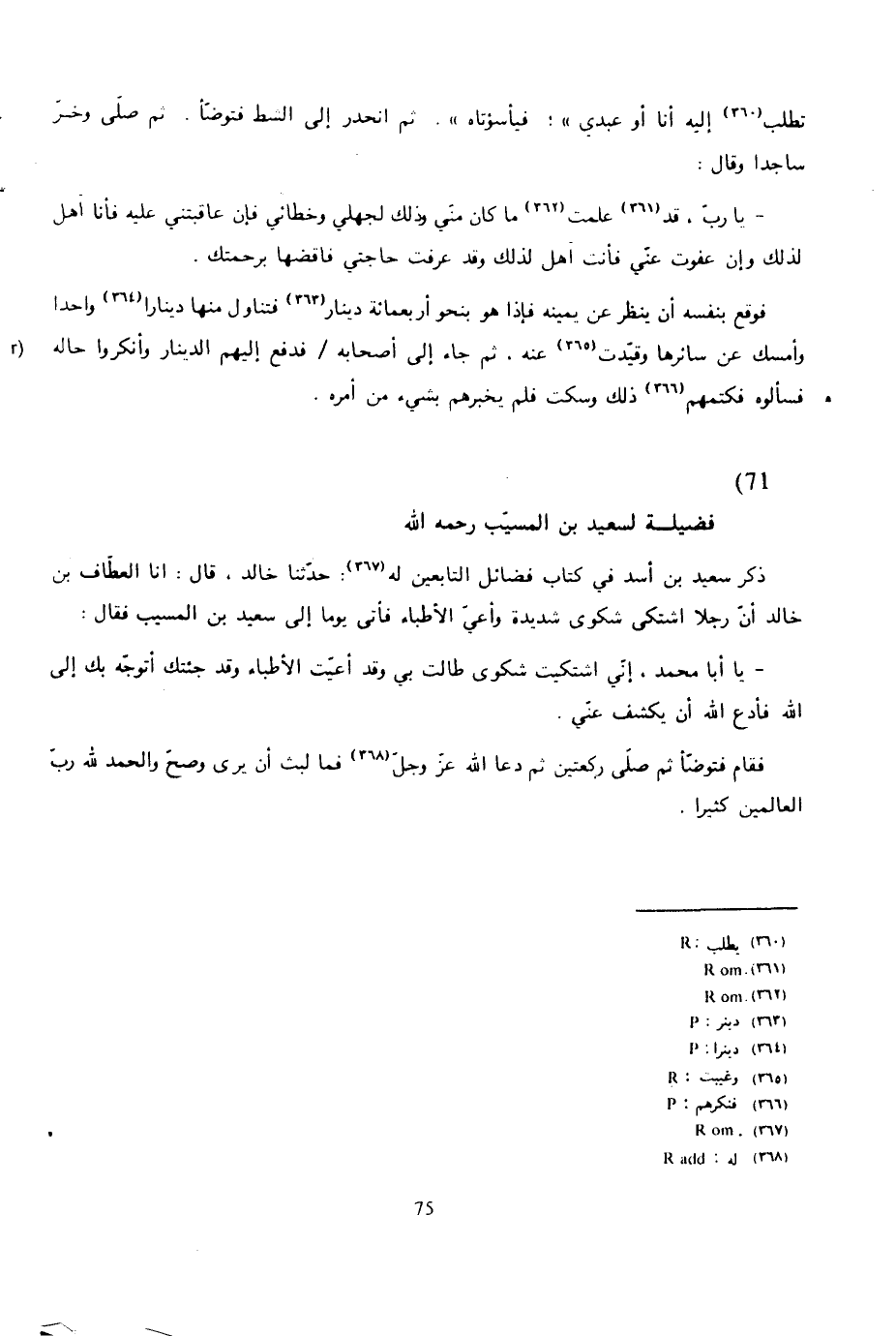 ثم تنحى ناحية فقال: «من أي أخ أستقرض دينارا، فلان ما أظنه يخف عليه بل فلان ما أظنه يخف عليه» ثم استفاق فبكى وجرت دموعه وقال: " واسوأتاه أطلب من العبيد وأنزل مولاهم، فأيسر ما يقول لي العبد إنما دفع إلي مولاي شيئا، فإن أمرني أن أدفع إليك منه شيئا دفعته، فبعد بذل وجهي إلى العبد ارجع إلى المولى، أفليس يقول لي المولى: «من كان أحق أن