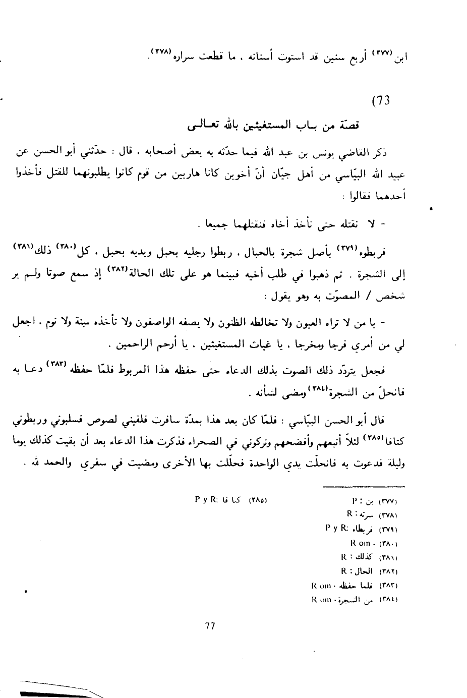 أخبرنا أبو بكر محمد بن عبد الله الحافظ، سماعا عن أبي الحسين مبارك بن أبي القاسم، قال: أخبرنا أبو الطيب الطاهر بن عبد الله القاضي، قال: أنا أبو الحسن الدارقطني، قال: أنا محمد بن مخلد، قال: ثنا أبو شعيب صالح بن عمران الدعاء، حدثني أحمد بن غسان: ثنا هاشم بن يحيى الفراء المجاشعي، قال: بينما مالك بن دينار يوما جالس إذ جاءه رجل فقال: يا أبا يحيى، ادع لامرأة حبلى منذ أربع سنين، قد أصبحت في كرب شديد.