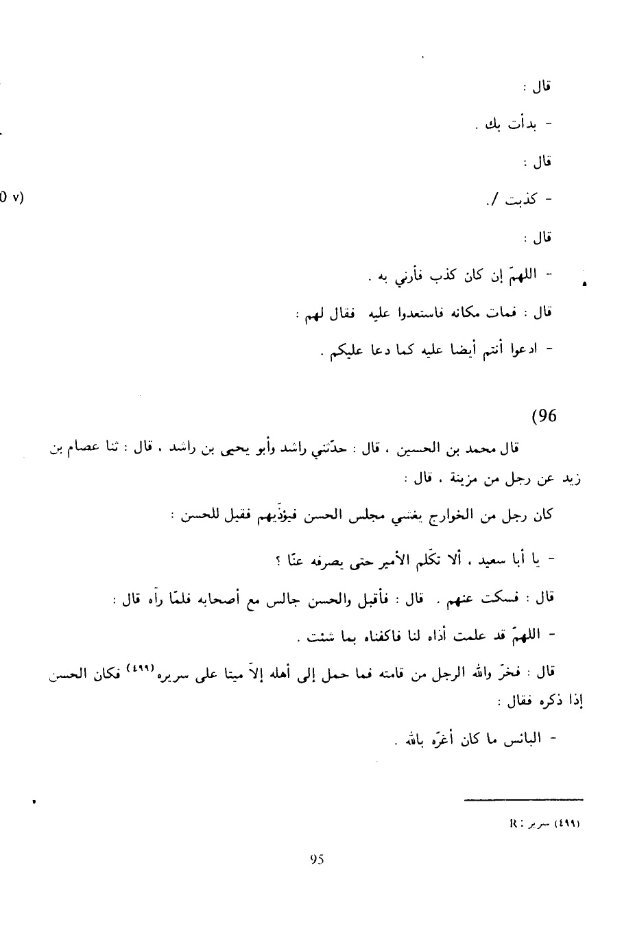 93 - وذكر أبو العباس بن السراج بإسناده، عن غيلان بن جرير، قال: حبس الحجاج مورقا في السجن فقال لي مطرف بن عبد الله: تعال حتى ندعو وأمنوا.