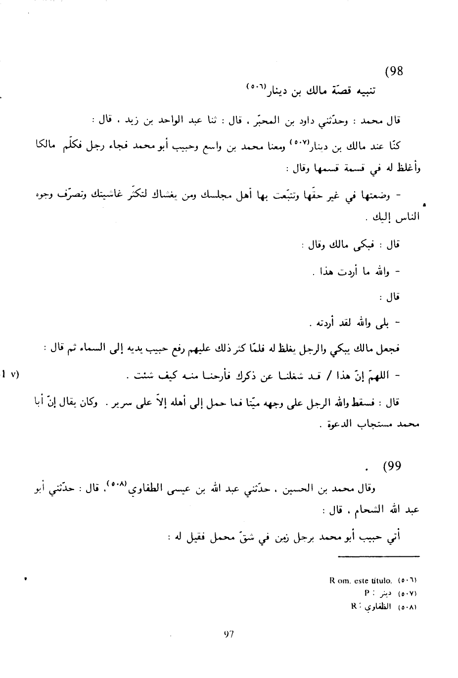 97 - قال محمد بن الحسين: حدثني أبو قدامة بن محمد الخشرمي، قال: حدثني الحجاج بن صفوان بن أبي يزيد، قال: وشي رجل ببسر بن سعيد، إلى الوليد بن عبد الملك، أنه يطعن على الأمراء، ويعيب بني مروان.