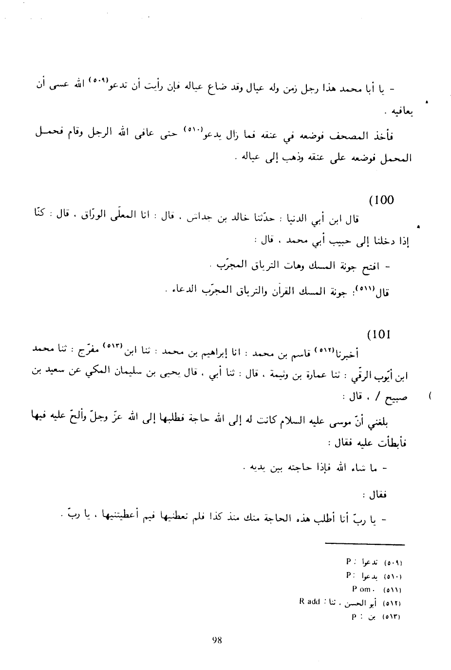 99 - وقال محمد بن الحسين، حدثني عبد الله بن عيسى الطفاوي، قال: حدثني أبو عبد الله الشحام، قال: أتي حبيب أبو محمد برجل زمن في شق محمل، فقيل له: