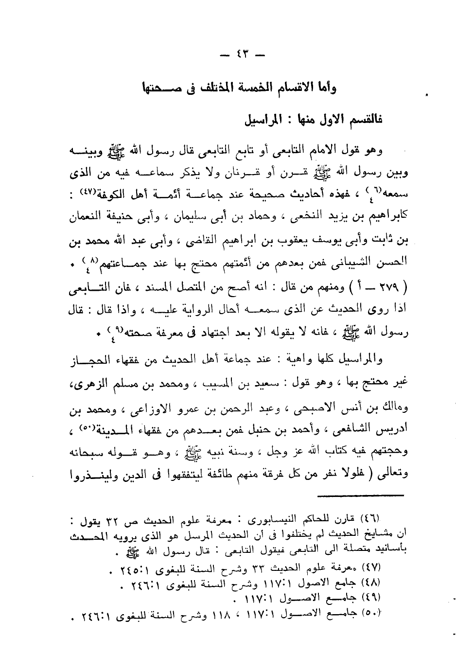 وَأَمَّا الْأَقْسَامُ الْخَمْسَةُ الْمَخْتَلَفُ فِي صِحَّتِهَا فَالْقِسْمُ الْأَوَّلُ مِنْهَا الْمَرَاسِيلُ