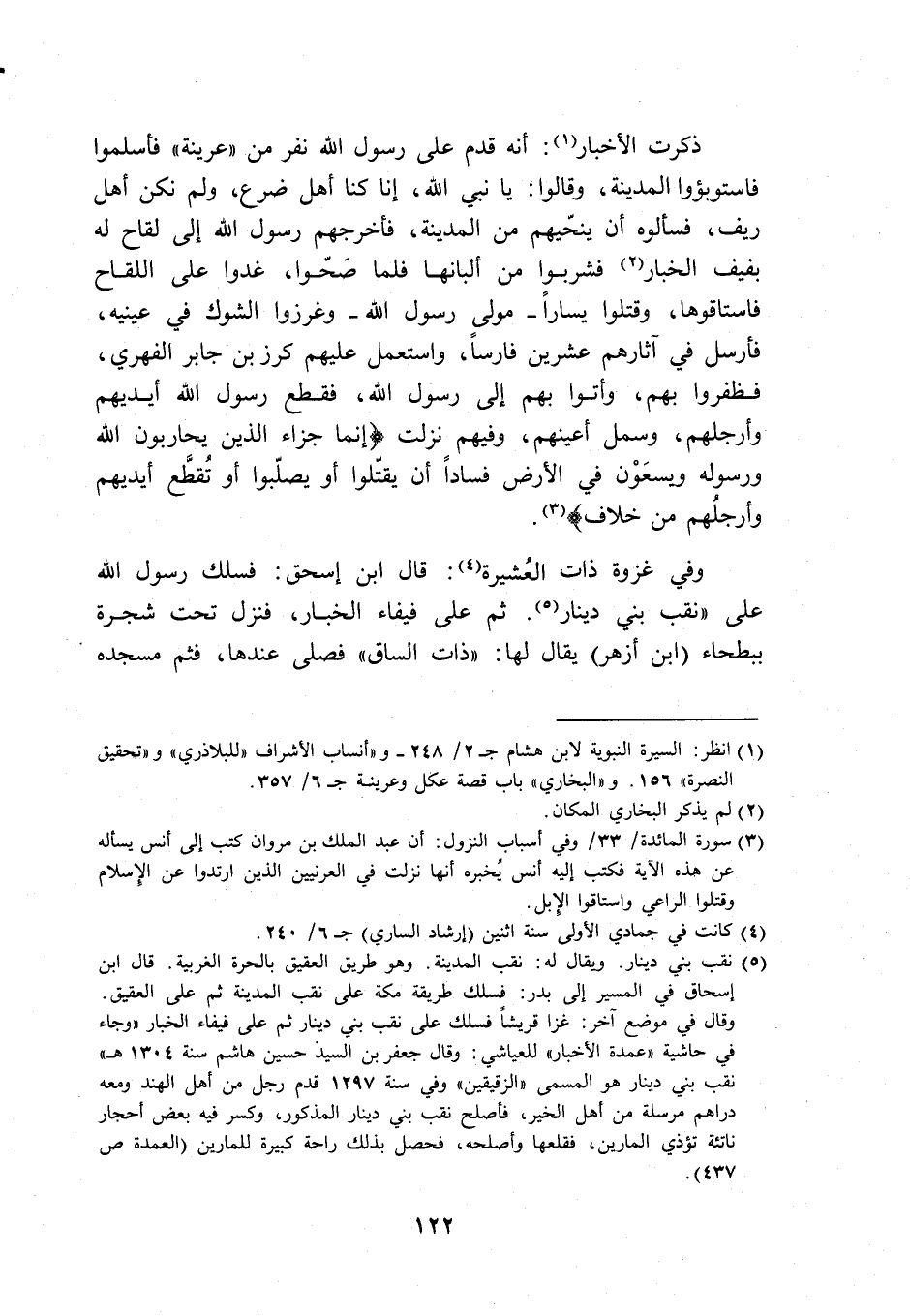 (1) انظر: السيرة النبوية لابن هشام جـ 248/ 2 _ و ((أنساب الأشراف ((للبلاذري)) و ((تحقيق النصرة)) 156. و ((البخاري)) باب قصة عكل وعرينة جـ 357/ 6.
