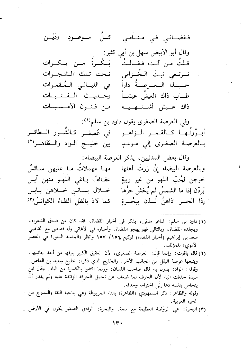 (2) قال ياقوت: وإنما قال: العرصة الصغرى، لأن العقيق الكبير ينيفها من أحد جانبيها، ويتبعها عرصة البقل من الجانب الآخر.